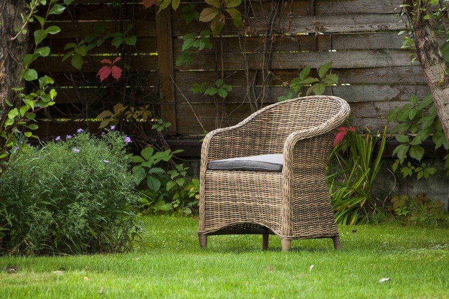 Высококачественный и неприхотливый искусственный ротанг серо-желтого оттенка.