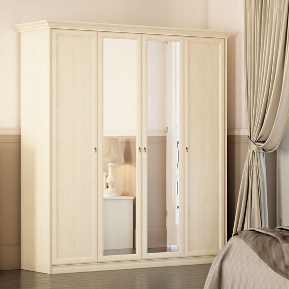 Шкаф 4-дверный для платья и белья Ekaterina крем