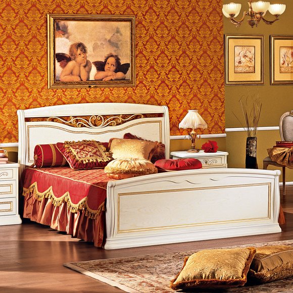 Двуспальная кровать, коллекция мебели для спальни в итальянском стиле Luigi, выполнена с использованием массива и шпона в отделке декапе. Кровать декорирована оригинальным кованных элементом и отделкой золотом. Стоимость указана без учета матраса и тахты.