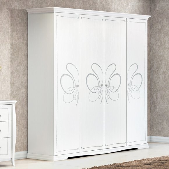 Шкаф четырехдверный (с зеркалом внутри) Viola белая