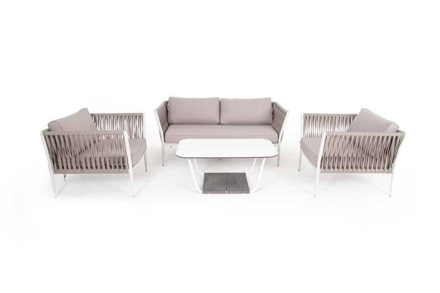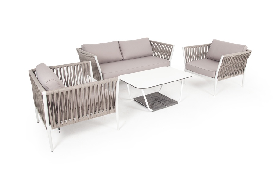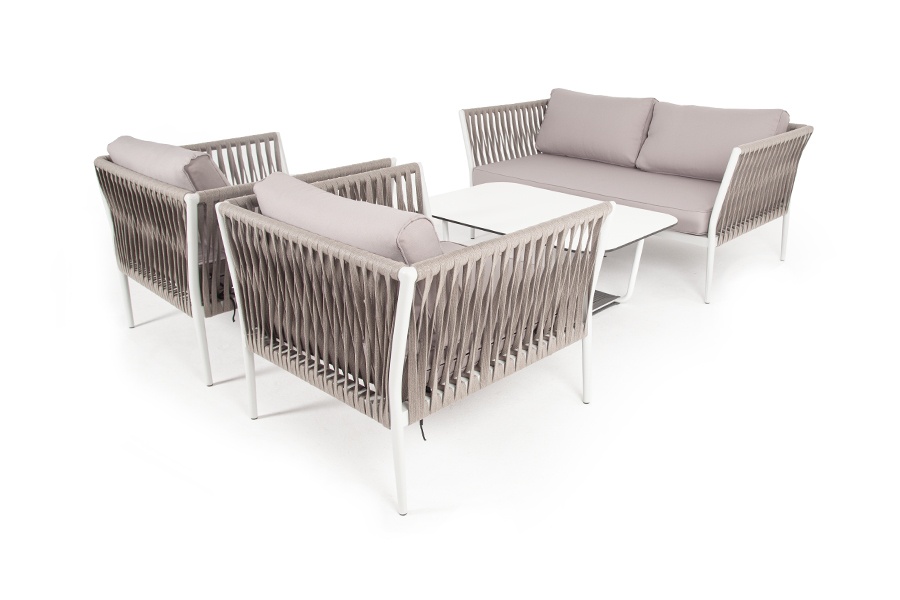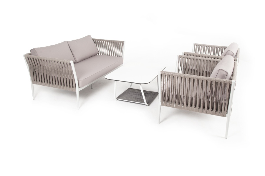 МЕБЕЛЬ ИЗ ИСКУССТВЕННОГО РОТАНГА • КОМПЛЕКТЫ ИЗ ИСКУССТВЕННОГО РОТАНГАДля сада и дачи • Комплекты для отдыха из искусственного ротангаKASS2C2T-4-SET Касабланка лаунж-зона плетеная из роупа 4-местная, цвет серо-коричневый