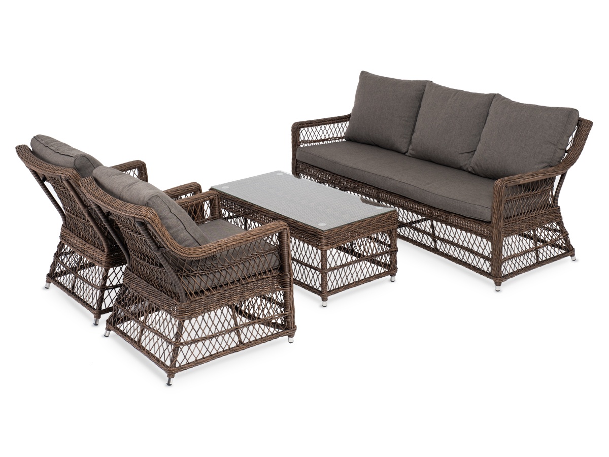 МЕБЕЛЬ ИЗ ИСКУССТВЕННОГО РОТАНГА • КОМПЛЕКТЫ ИЗ ИСКУССТВЕННОГО РОТАНГАДля сада и дачи • Комплекты для отдыха из искусственного ротангаGLS3C2T-4-SET brown Гранд Латте лаунж-зона из искусственного ротанга, цвет коричневый