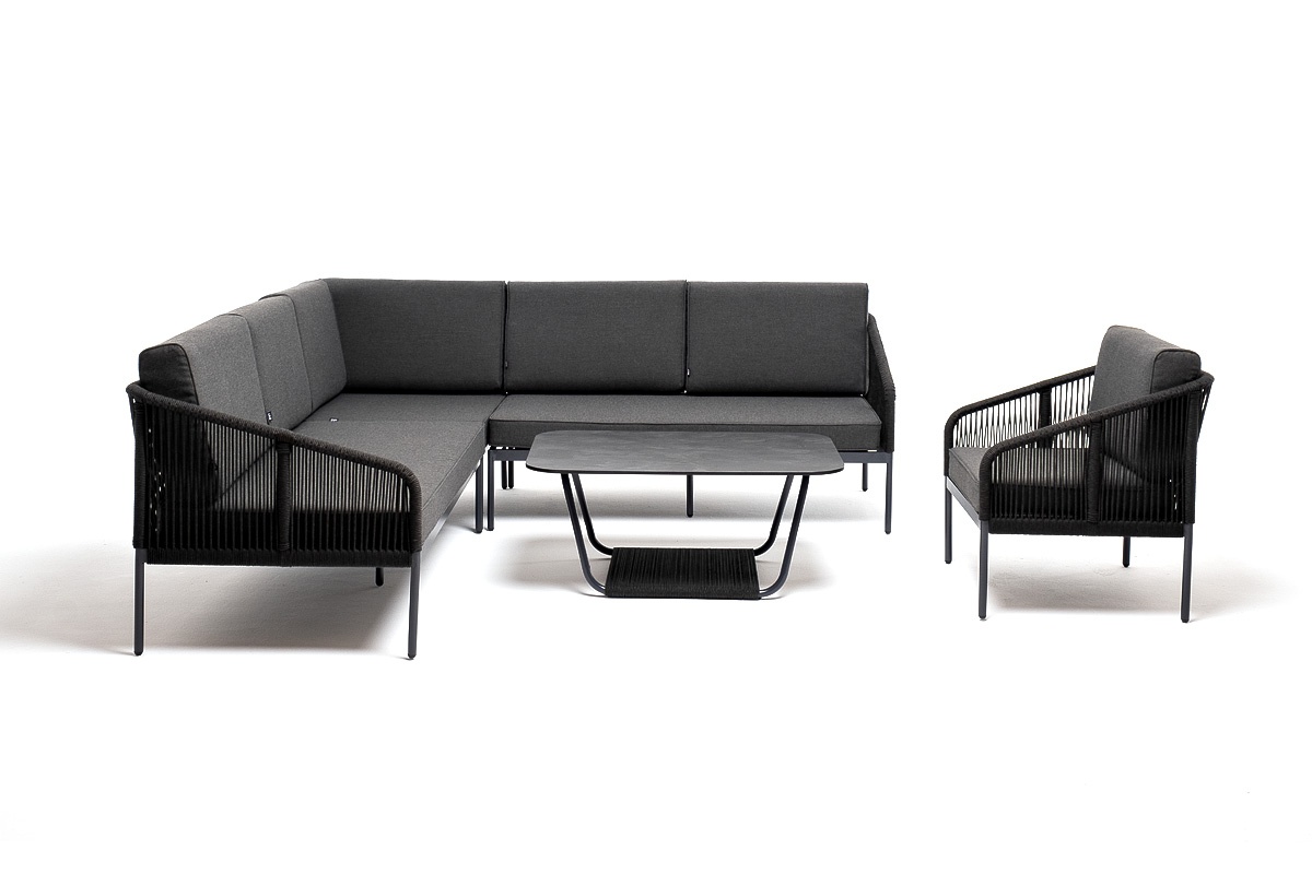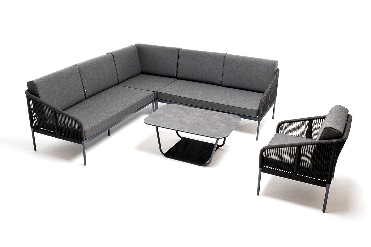 МЕБЕЛЬ ИЗ ИСКУССТВЕННОГО РОТАНГА • КОМПЛЕКТЫ ИЗ ИСКУССТВЕННОГО РОТАНГАДля сада и дачи • Комплекты для отдыха из искусственного ротангаKAN-S5C1T1-5-SET D-gray Канны модульная угловая лаунж-зона из роупа (веревки), цвет темно-серый