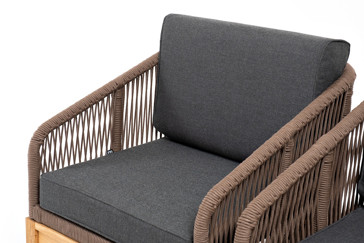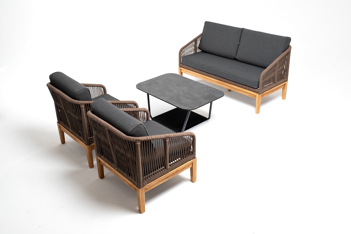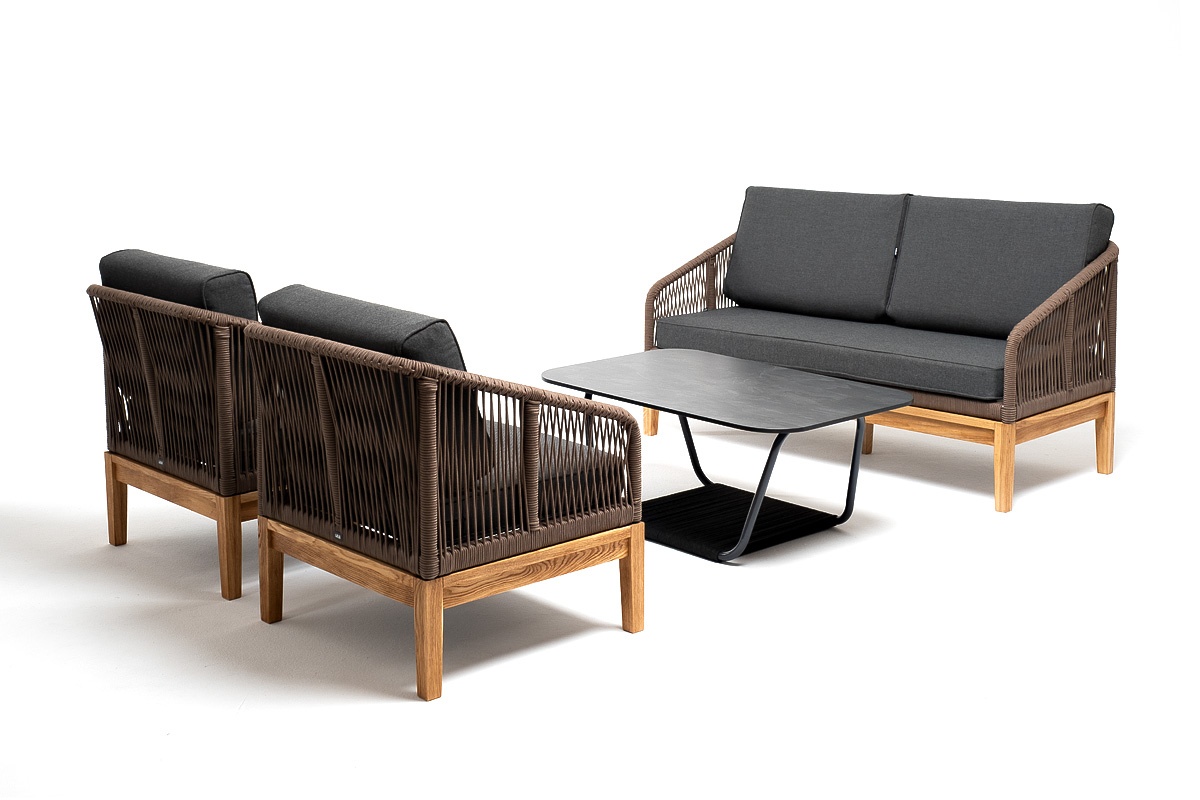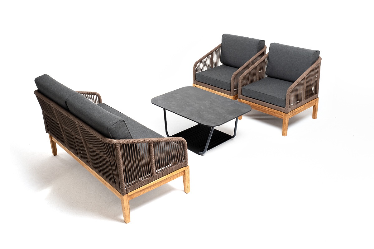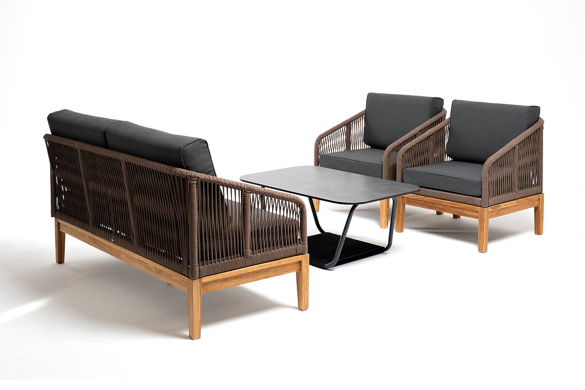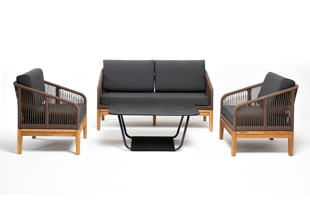 МЕБЕЛЬ ИЗ ИСКУССТВЕННОГО РОТАНГА • КОМПЛЕКТЫ ИЗ ИСКУССТВЕННОГО РОТАНГАДля сада и дачи • Комплекты для отдыха из искусственного ротангаKANS2C2TJ-4-SET-gran brown(D-gray) Канны лаунж-зона 4-местная из роупа со столом Гранада (серый гранит), основание дуб, роуп коричневый, ткань темно-серая
