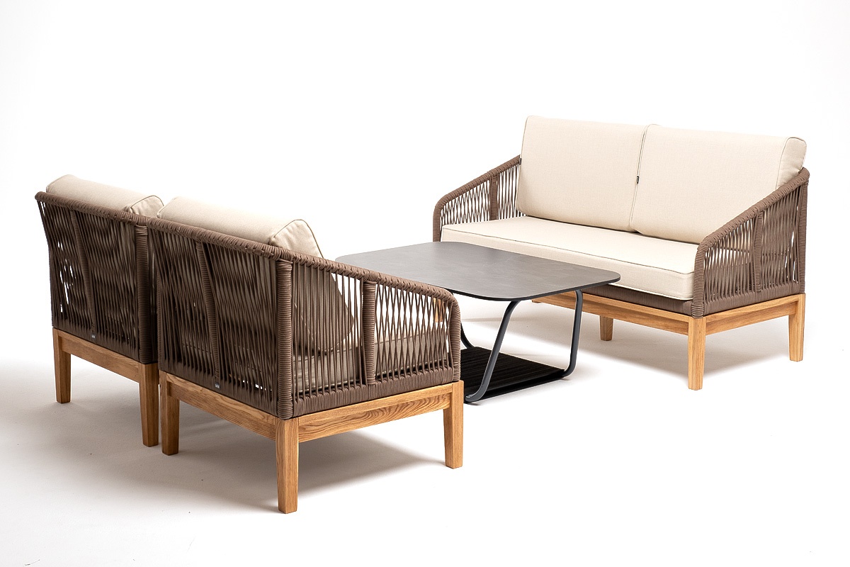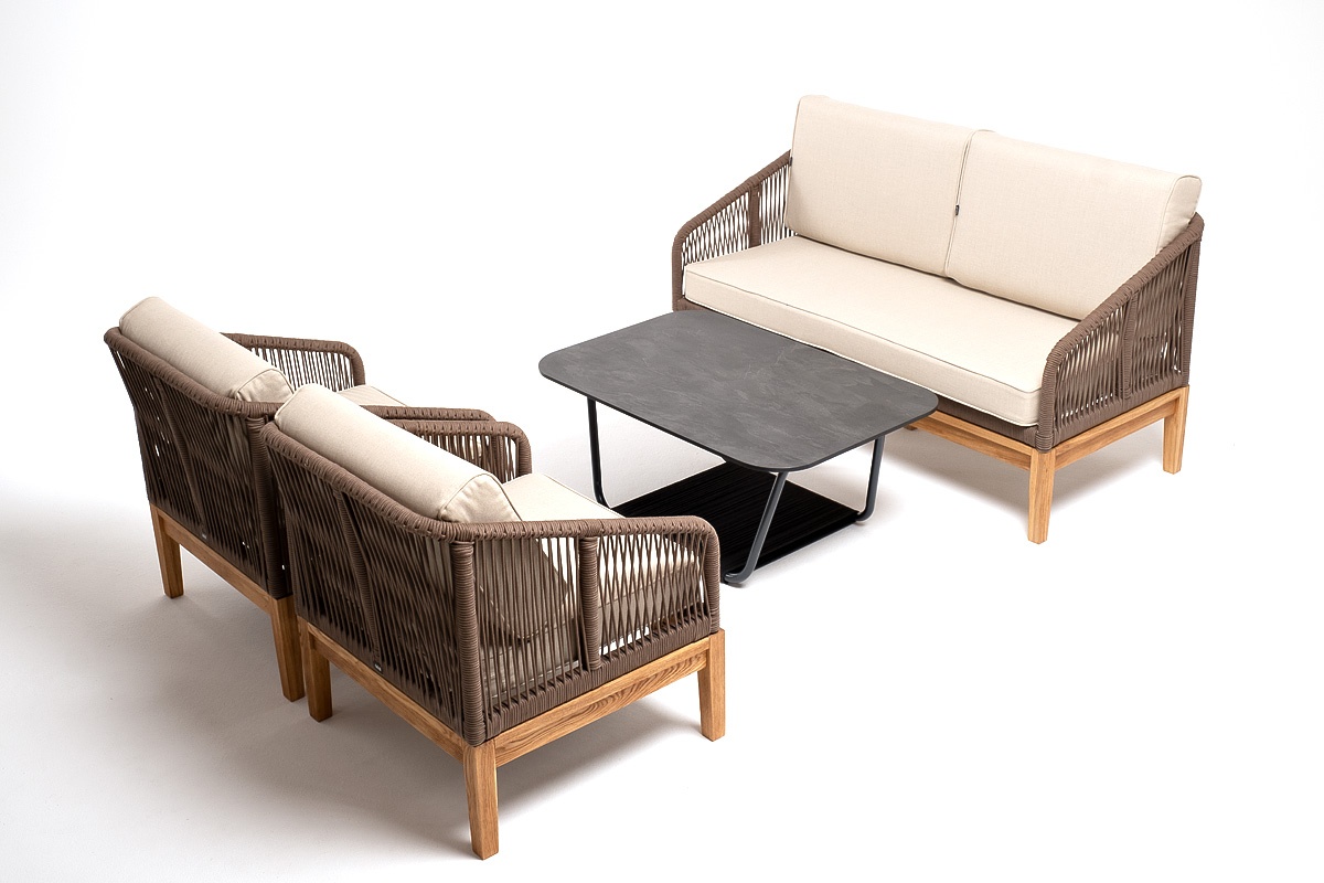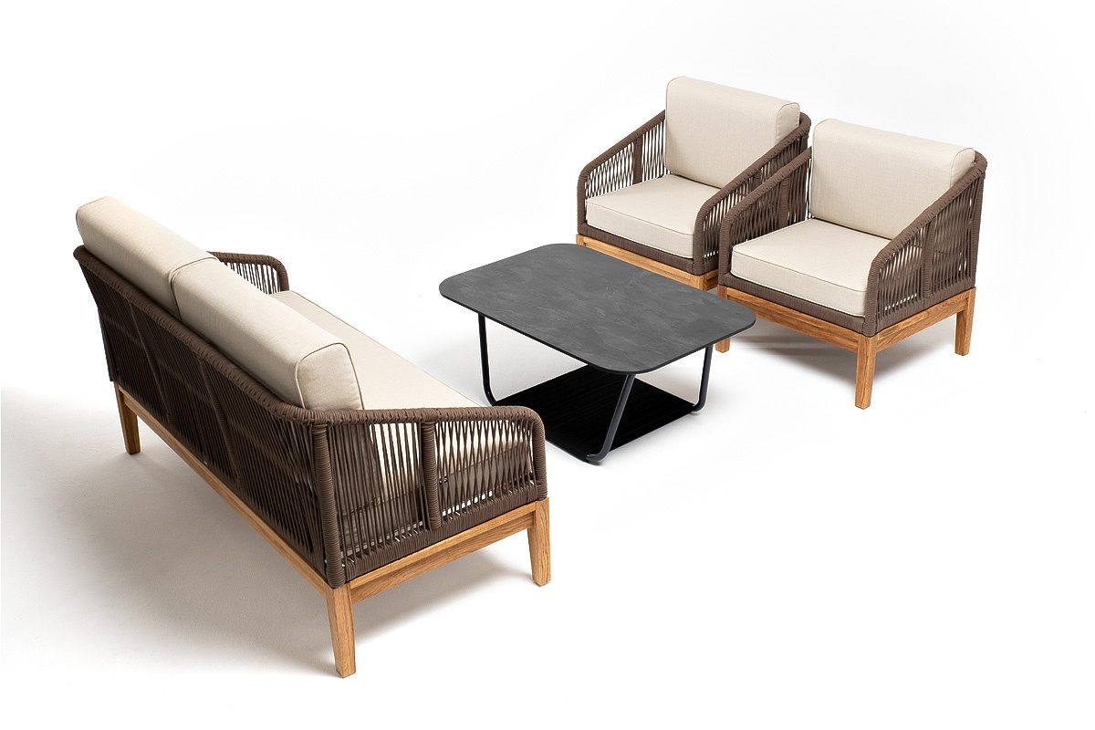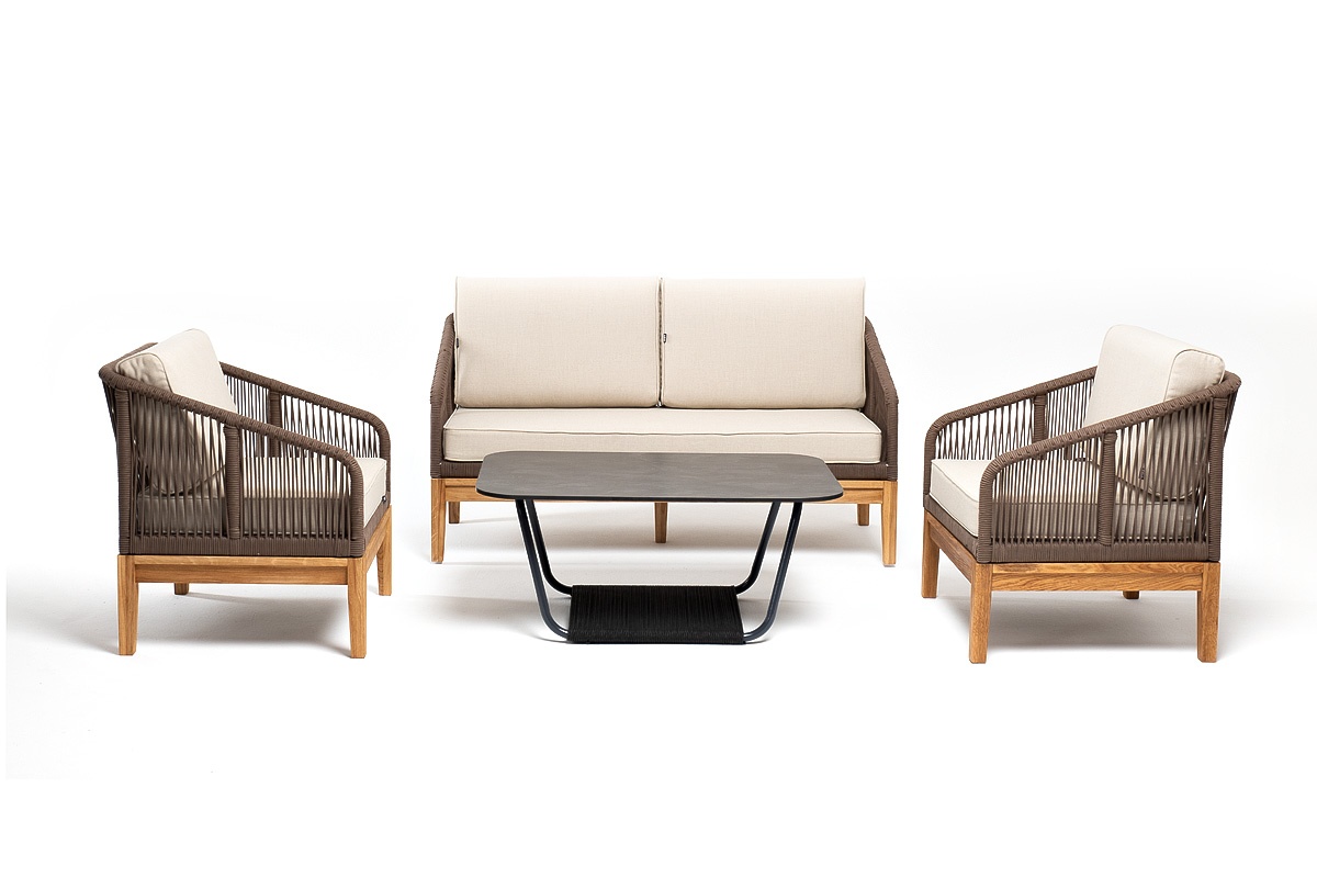 МЕБЕЛЬ ИЗ ИСКУССТВЕННОГО РОТАНГА • КОМПЛЕКТЫ ИЗ ИСКУССТВЕННОГО РОТАНГАДля сада и дачи • Комплекты для отдыха из искусственного ротангаKANS2C2TJ-4-RC658-SET brown(beige) Канны лаунж-зона 4-местная из роупа со столом Гранада (серый гранит), основание дуб, роуп коричневый, ткань бежевая