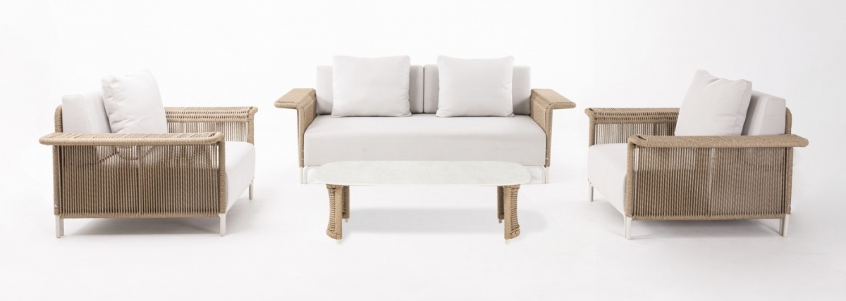 МЕБЕЛЬ ИЗ ИСКУССТВЕННОГО РОТАНГА • КОМПЛЕКТЫ ИЗ ИСКУССТВЕННОГО РОТАНГАДля сада и дачи • Комплекты для отдыха из искусственного ротангаMS2C2T-4-SET Мальдивы лаунж-зона из искусственного ротанга, цвет соломенный
