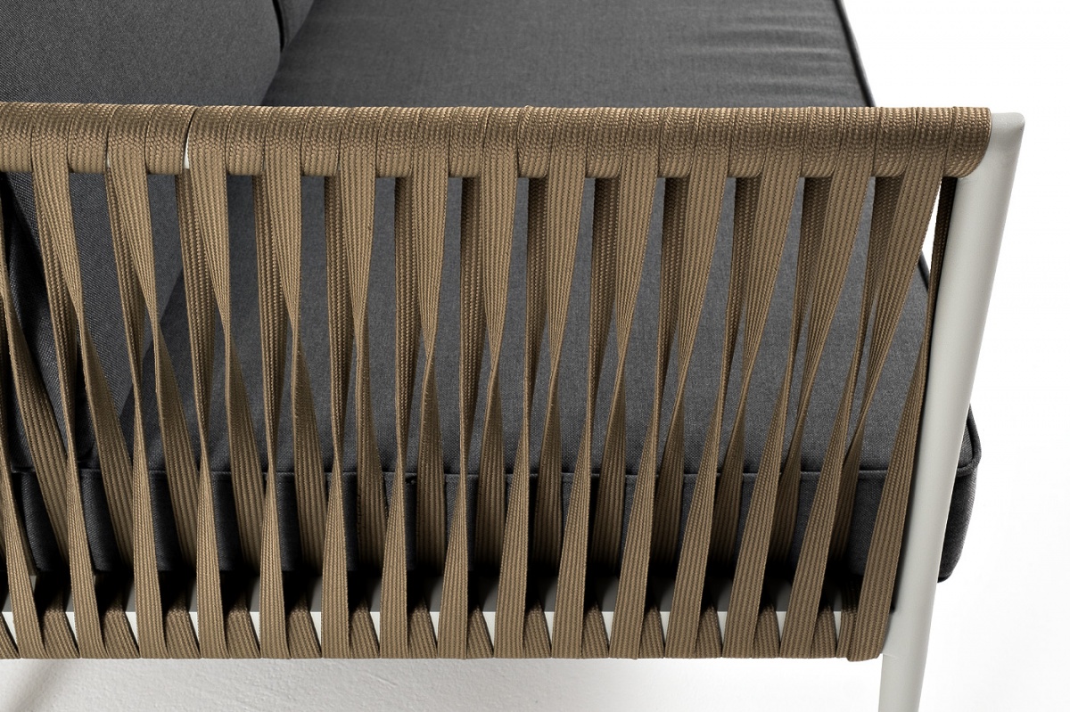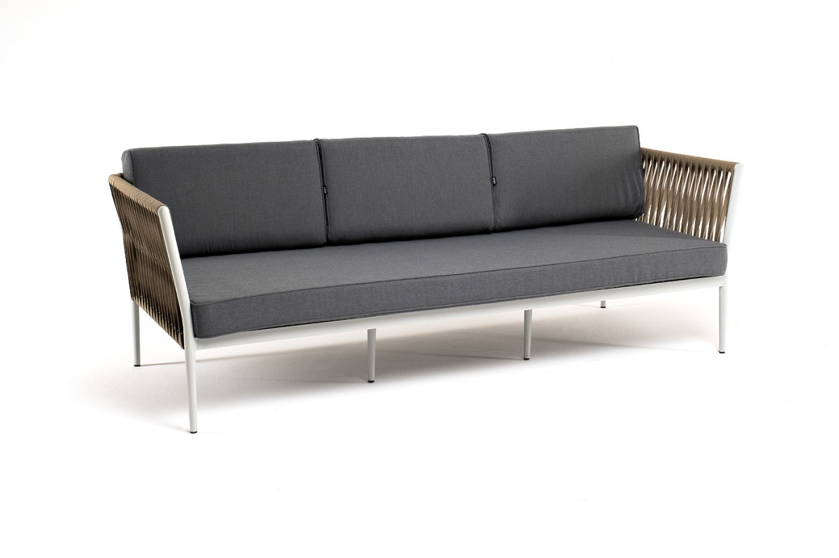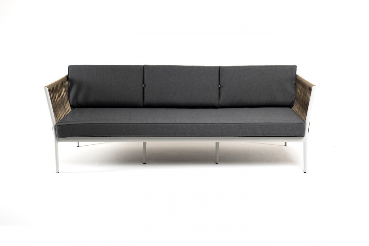 МЕБЕЛЬ ИЗ ИСКУССТВЕННОГО РОТАНГА • КОМПЛЕКТЫ ИЗ ИСКУССТВЕННОГО РОТАНГАДля сада и дачи • Диваны из искусственного ротангаKAS-S-3-001 RAL7035 Mua G-brown(gray017) Касабланка диван 3-местный плетеный из роупа, каркас алюминий светло-серый (RAL7035) муар, роуп серо-коричневый 23мм, ткань серая 017
