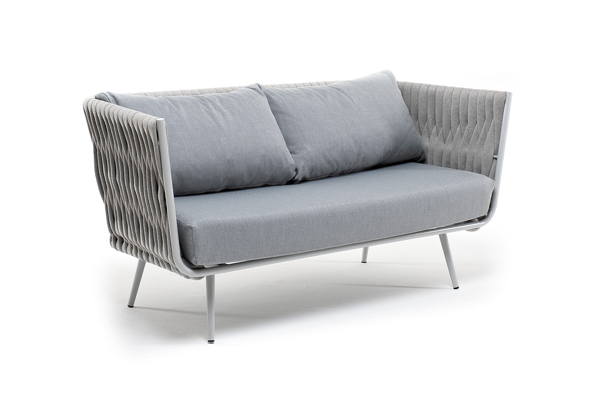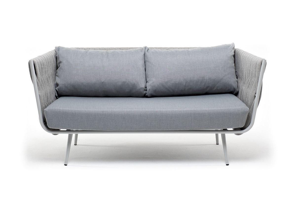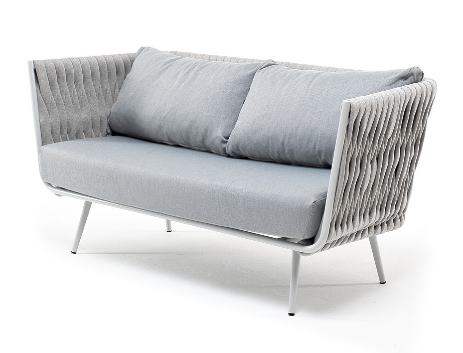 МЕБЕЛЬ ИЗ ИСКУССТВЕННОГО РОТАНГА • КОМПЛЕКТЫ ИЗ ИСКУССТВЕННОГО РОТАНГАДля сада и дачи • Диваны из искусственного ротангаMON-S-2-001 W Mua H-grey(H-gray) Монако диван 2-местный плетеный из роупа, каркас алюминий светло-серый (RAL7035) муар, роуп светло-серый 40 мм, ткань светло-серая