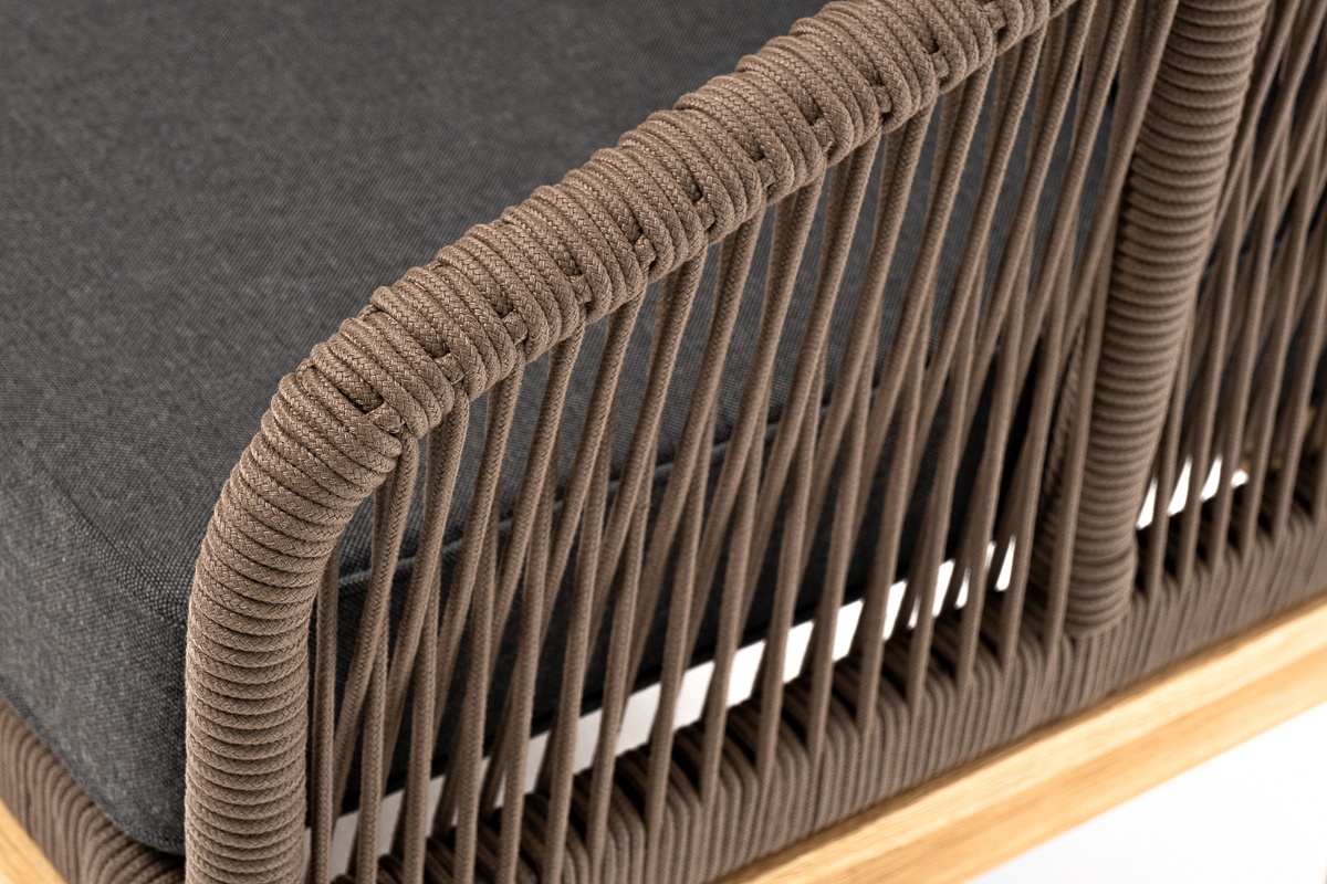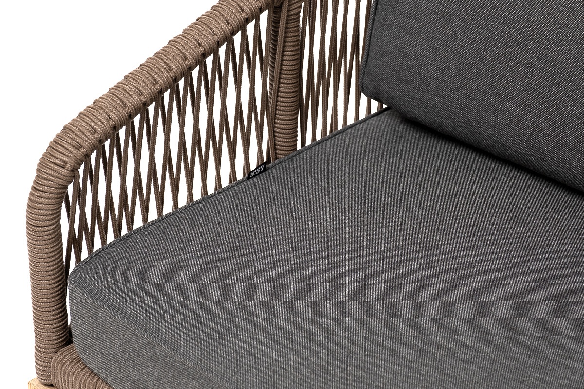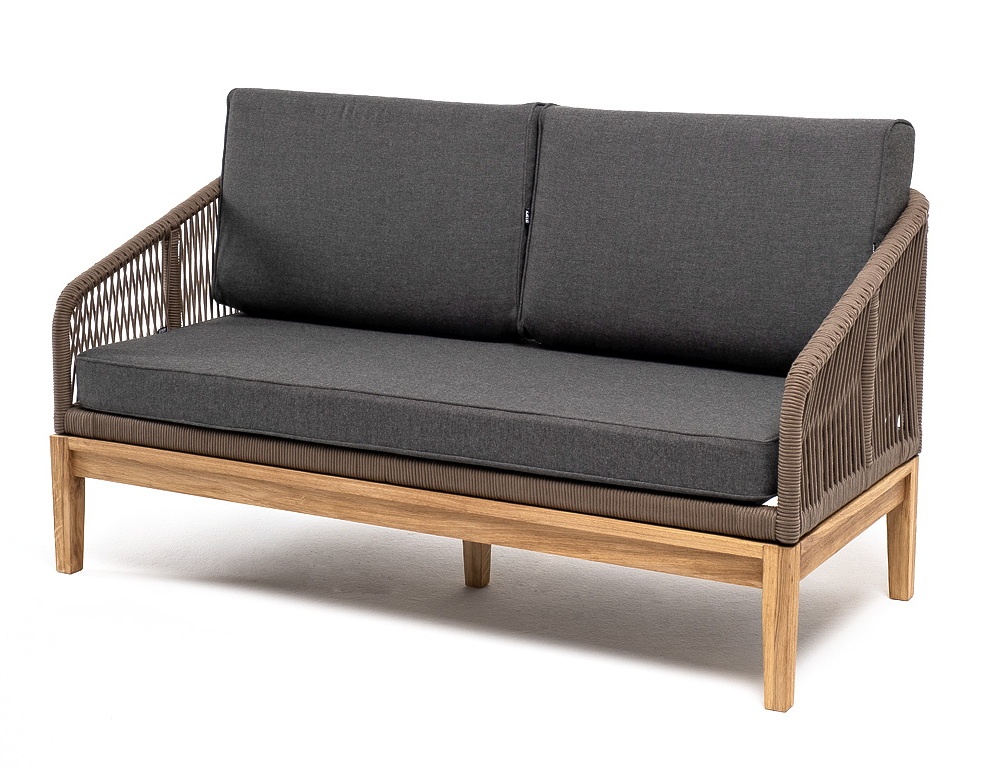 МЕБЕЛЬ ИЗ ИСКУССТВЕННОГО РОТАНГА • КОМПЛЕКТЫ ИЗ ИСКУССТВЕННОГО РОТАНГАДля сада и дачи • Диваны из искусственного ротангаKAN-S-2-T002 brown(D-gray027) Канны диван 2-местный плетеный из роупа, основание дуб, роуп коричневый круглый, ткань темно-серая 027