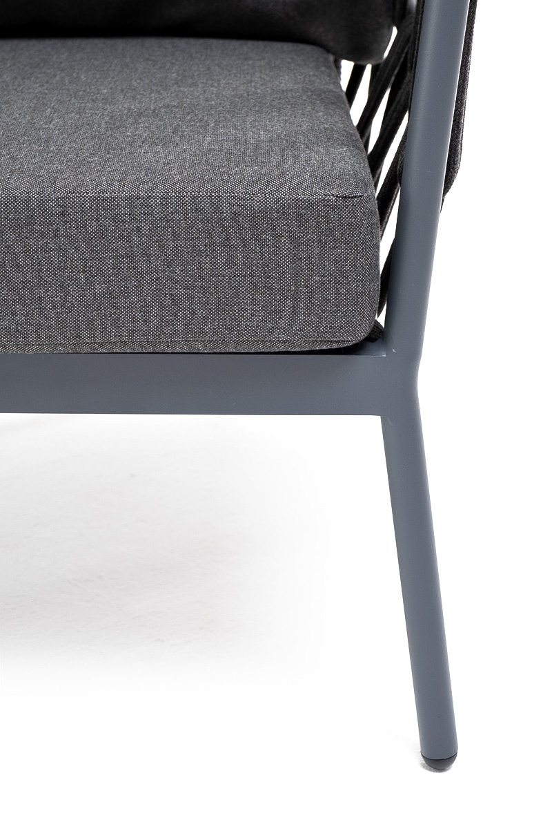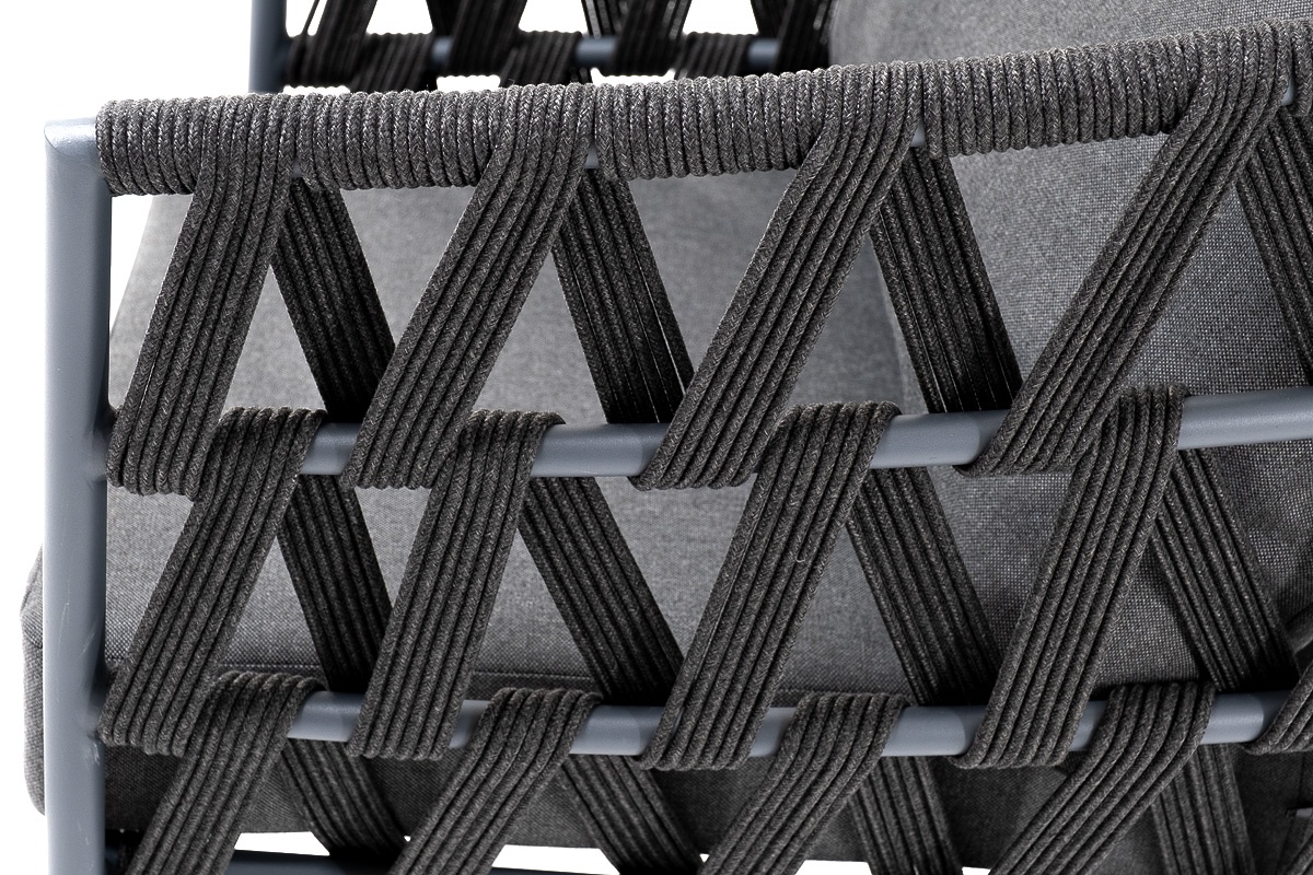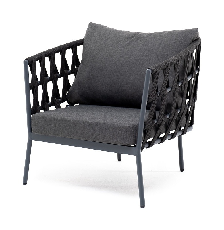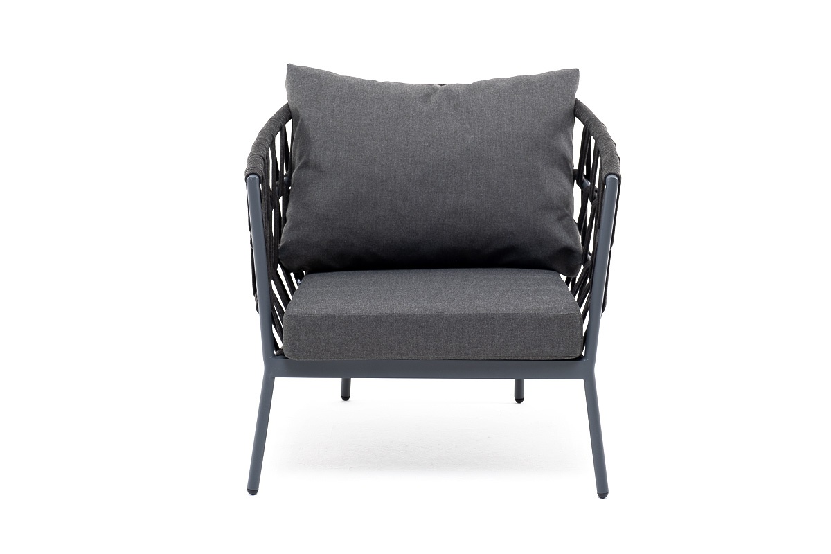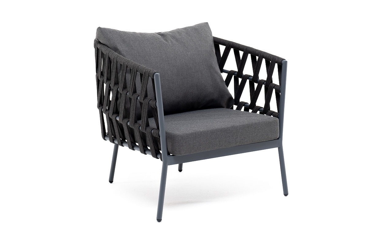 МЕБЕЛЬ ИЗ ИСКУССТВЕННОГО РОТАНГА • КОМПЛЕКТЫ ИЗ ИСКУССТВЕННОГО РОТАНГАДля сада и дачи • Кресла из искусственного ротангаDIE-A-001 RAL7024 Mua D-grey(D-gray027) Диего кресло плетеное из роупа, каркас алюминий темно-серый (RAL7024) муар, роуп темно-серый круглый, ткань темно-серая 027