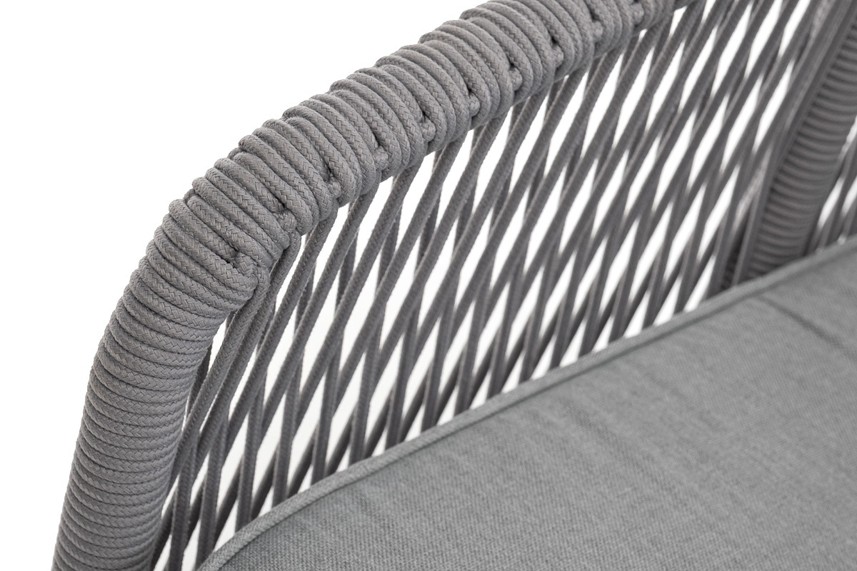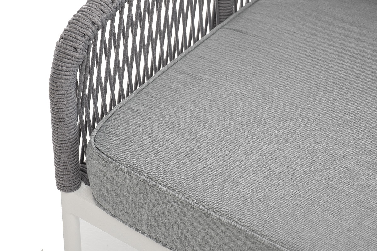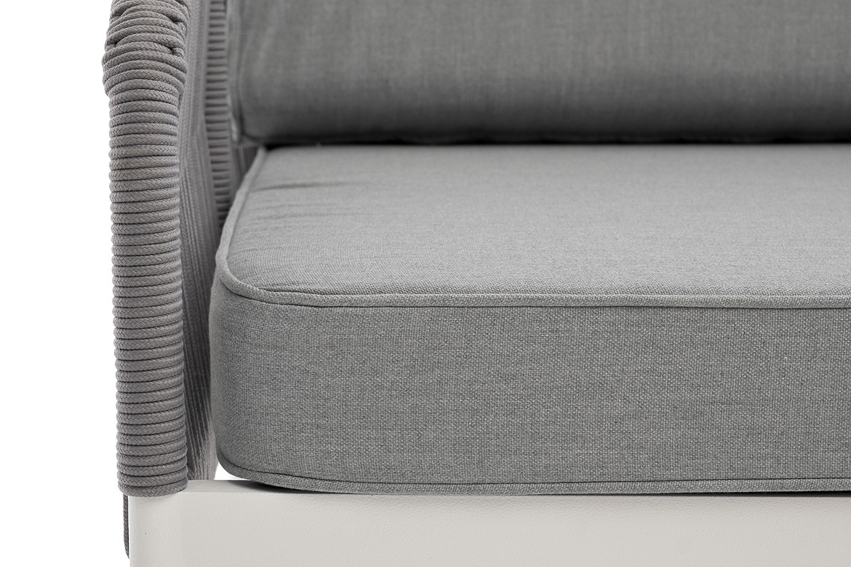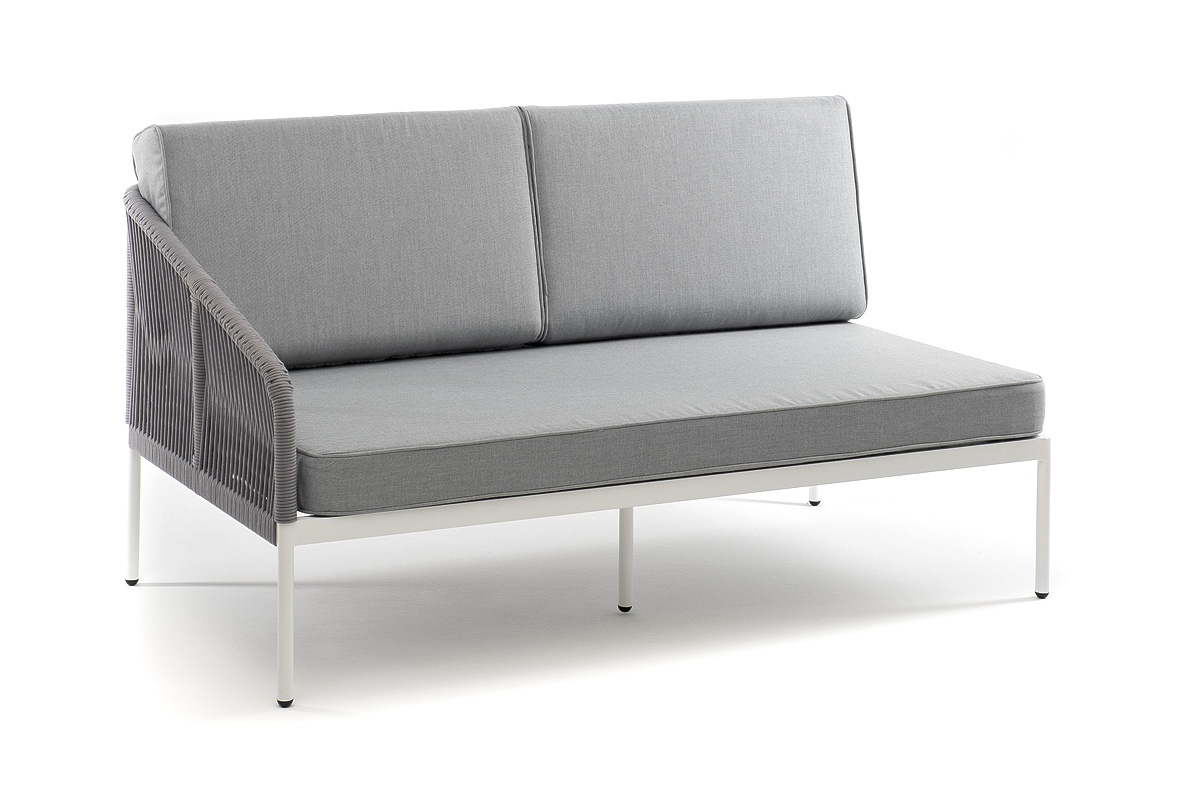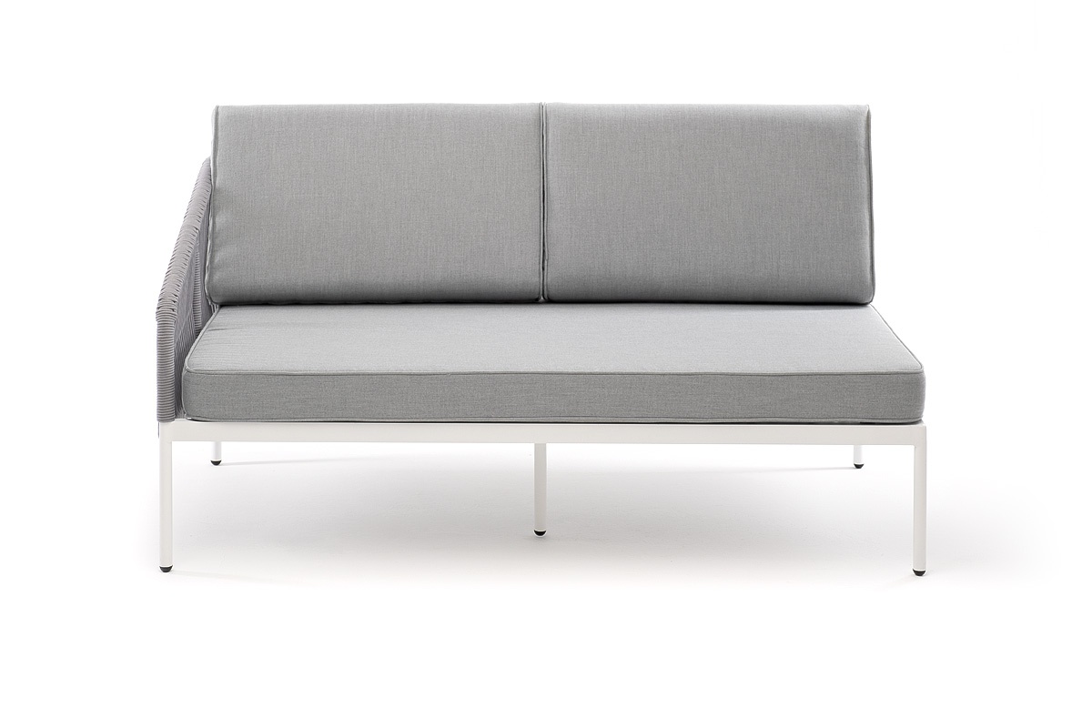 МЕБЕЛЬ ИЗ ИСКУССТВЕННОГО РОТАНГА • КОМПЛЕКТЫ ИЗ ИСКУССТВЕННОГО РОТАНГАДля сада и дачи • Кресла из искусственного ротангаKAN-MRS2-001 W SH H-grey(H-gray) Канны правый модуль плетеный из роупа, каркас алюминий белый шагрень, роуп светло-серый круглый, ткань светло-серая