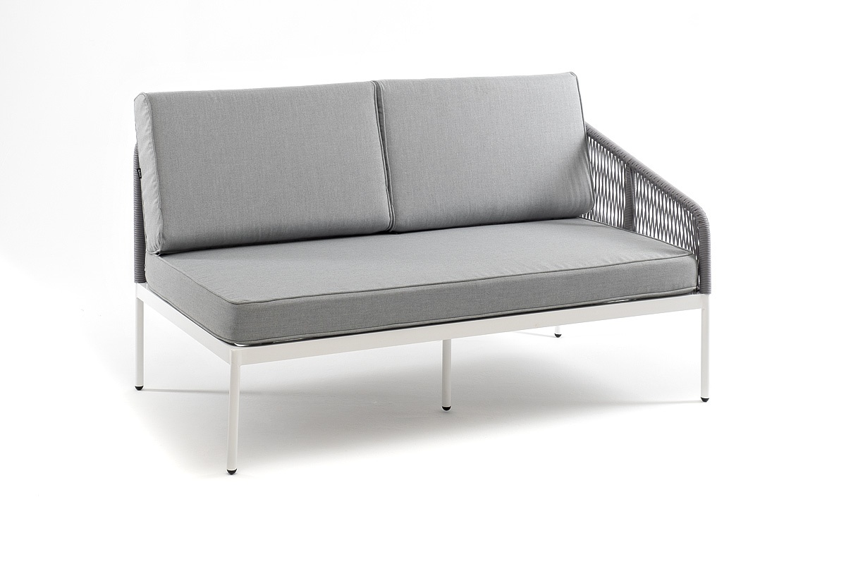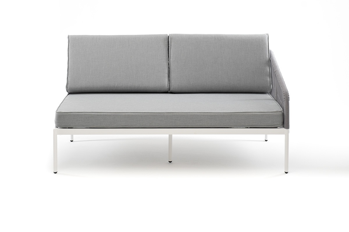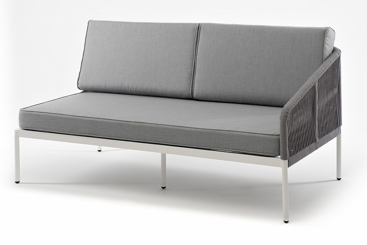МЕБЕЛЬ ИЗ ИСКУССТВЕННОГО РОТАНГА • КОМПЛЕКТЫ ИЗ ИСКУССТВЕННОГО РОТАНГАДля сада и дачи • Кресла из искусственного ротангаKAN-MLS2-001 W SH H-grey(H-gray) Канны левый модуль плетеный из роупа, каркас алюминий белый шагрень, роуп светло-серый круглый, ткань светло-серая