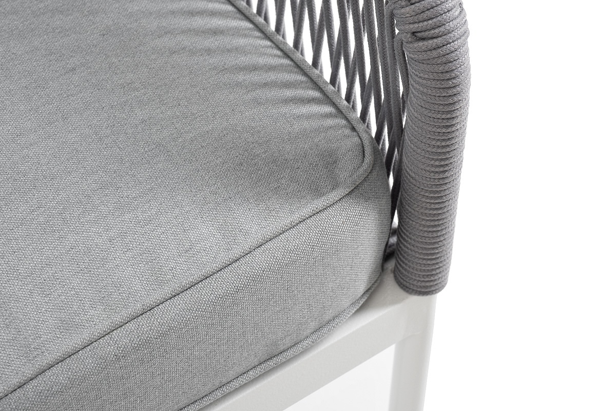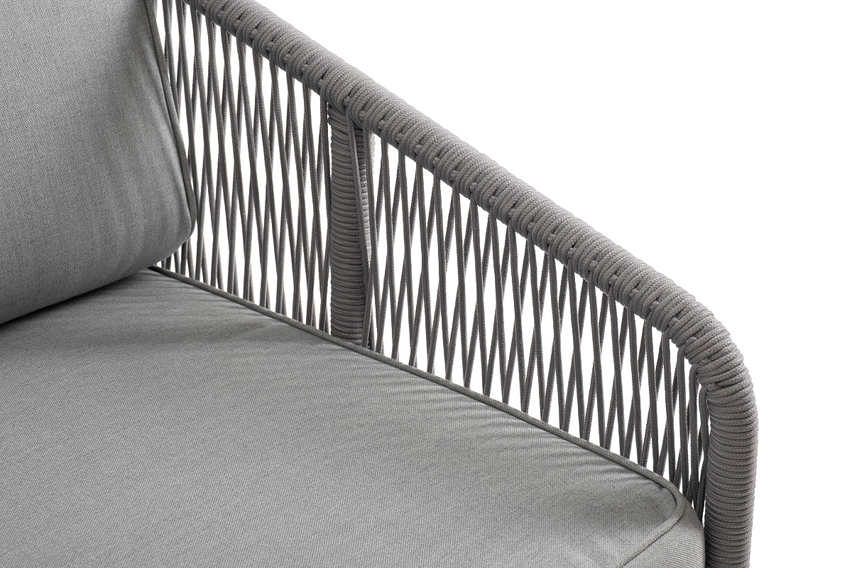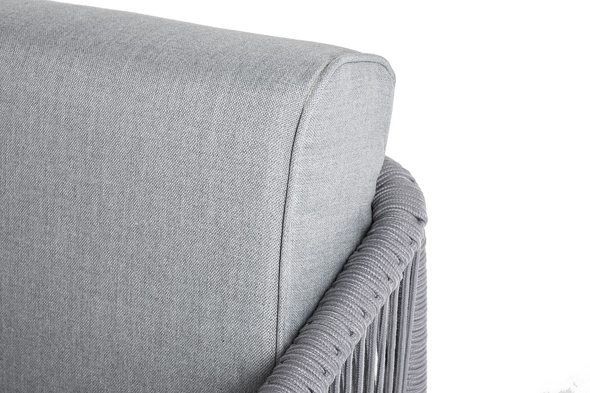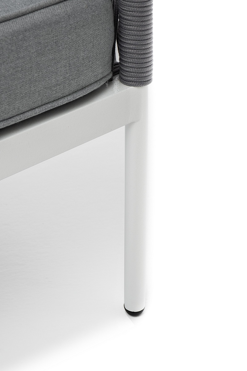МЕБЕЛЬ ИЗ ИСКУССТВЕННОГО РОТАНГА • КОМПЛЕКТЫ ИЗ ИСКУССТВЕННОГО РОТАНГАДля сада и дачи • Кресла из искусственного ротангаKAN-MLS2-001 W SH H-grey(H-gray) Канны левый модуль плетеный из роупа, каркас алюминий белый шагрень, роуп светло-серый круглый, ткань светло-серая