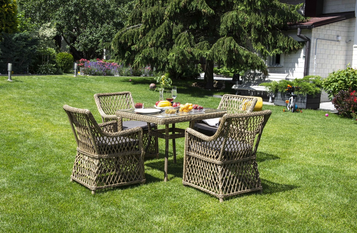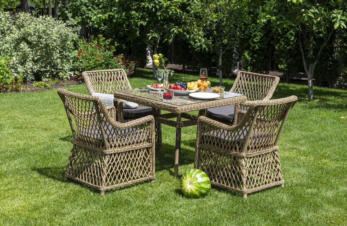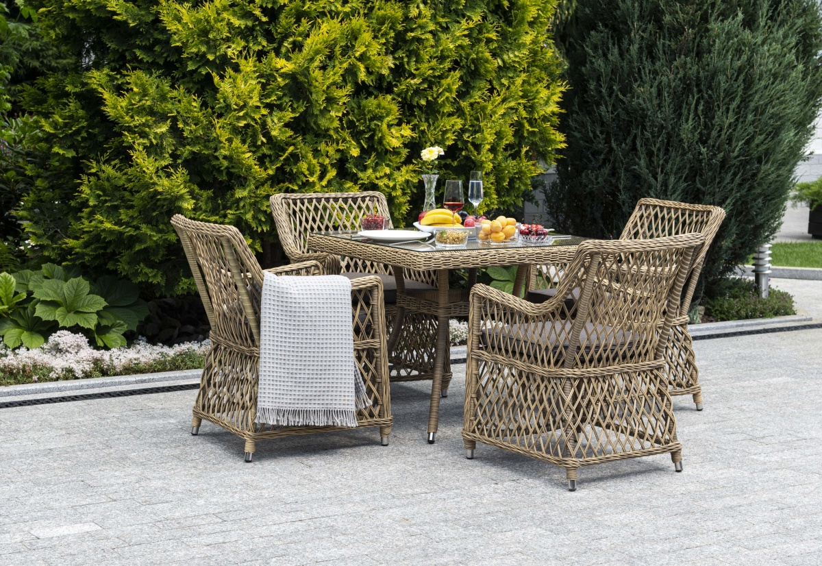 МЕБЕЛЬ ИЗ ИСКУССТВЕННОГО РОТАНГА • СТОЛЫ И СТУЛЬЯ ИЗ ИСКУССТВЕННОГО РОТАНГАДля сада и дачи • Столы обеденные из искусственного ротангаYH-T4428G Айриш стол плетеный из искусственного ротанга, цвет соломенный