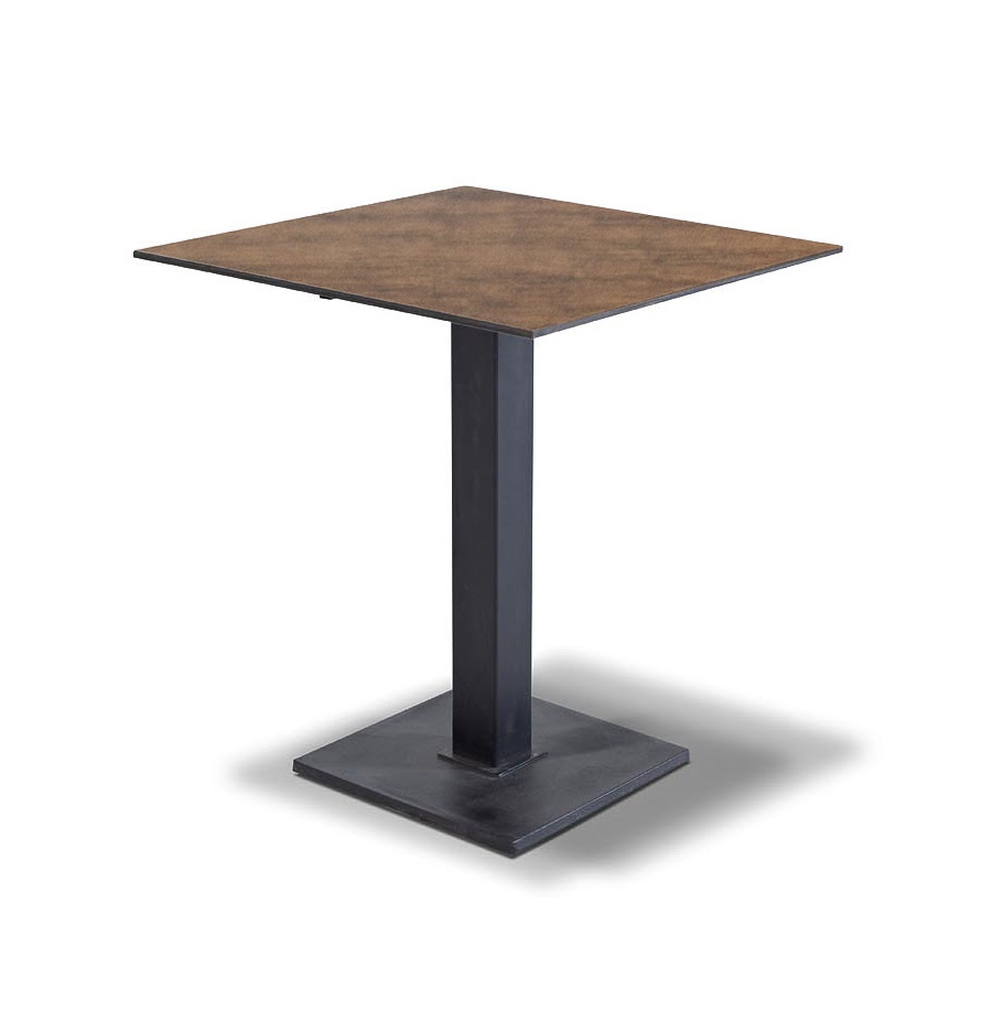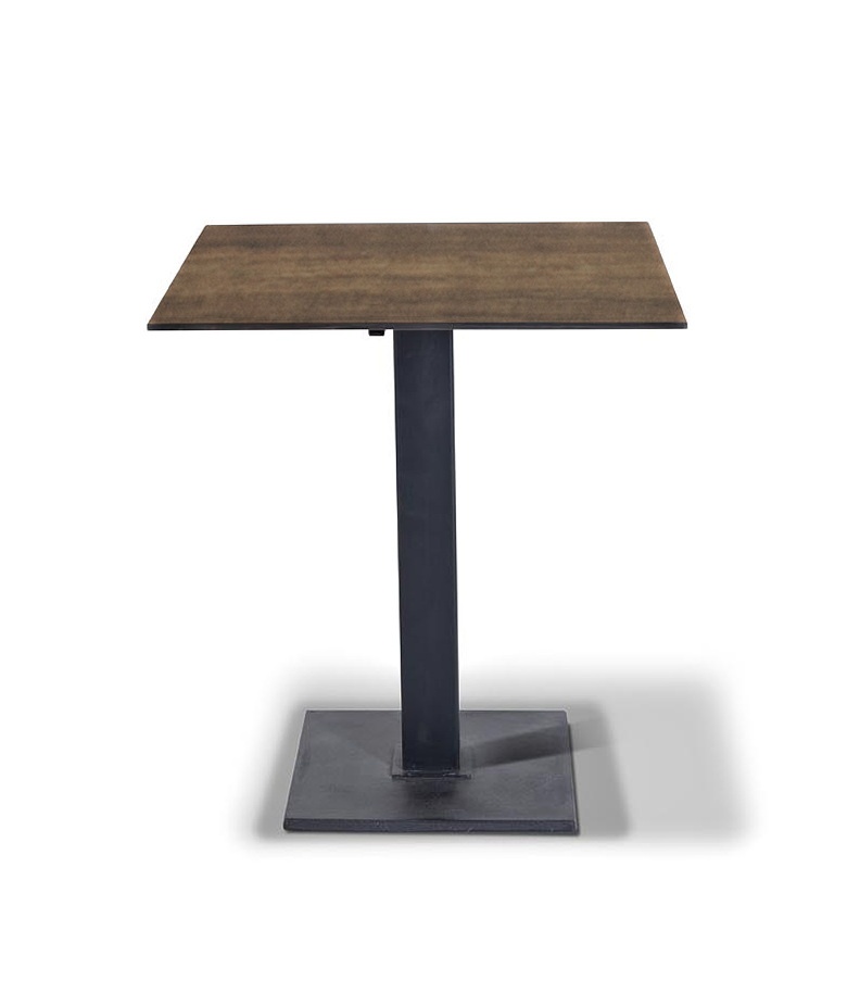 Стол Каффе с квадратной столешницей 70x70 см, высота стола 75 см. Столешница выполнена из высококачественного монолитного компакт-пластик HPL в цвете дуб, толщина столешницы - 12 мм. Подстолье или основание - чугун, окрашенное в черный цвет порошковой краской. Срок изготовления от 3 дней. Возможно изготовление стола любого размера под заказ.