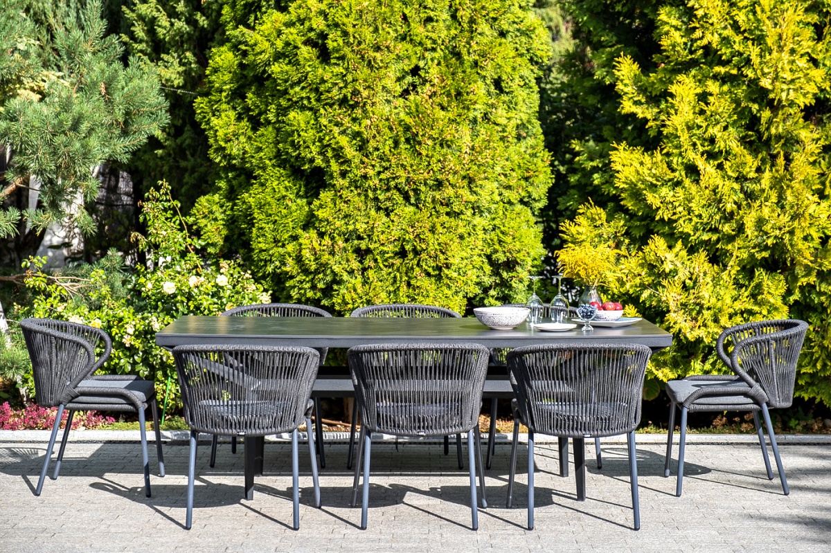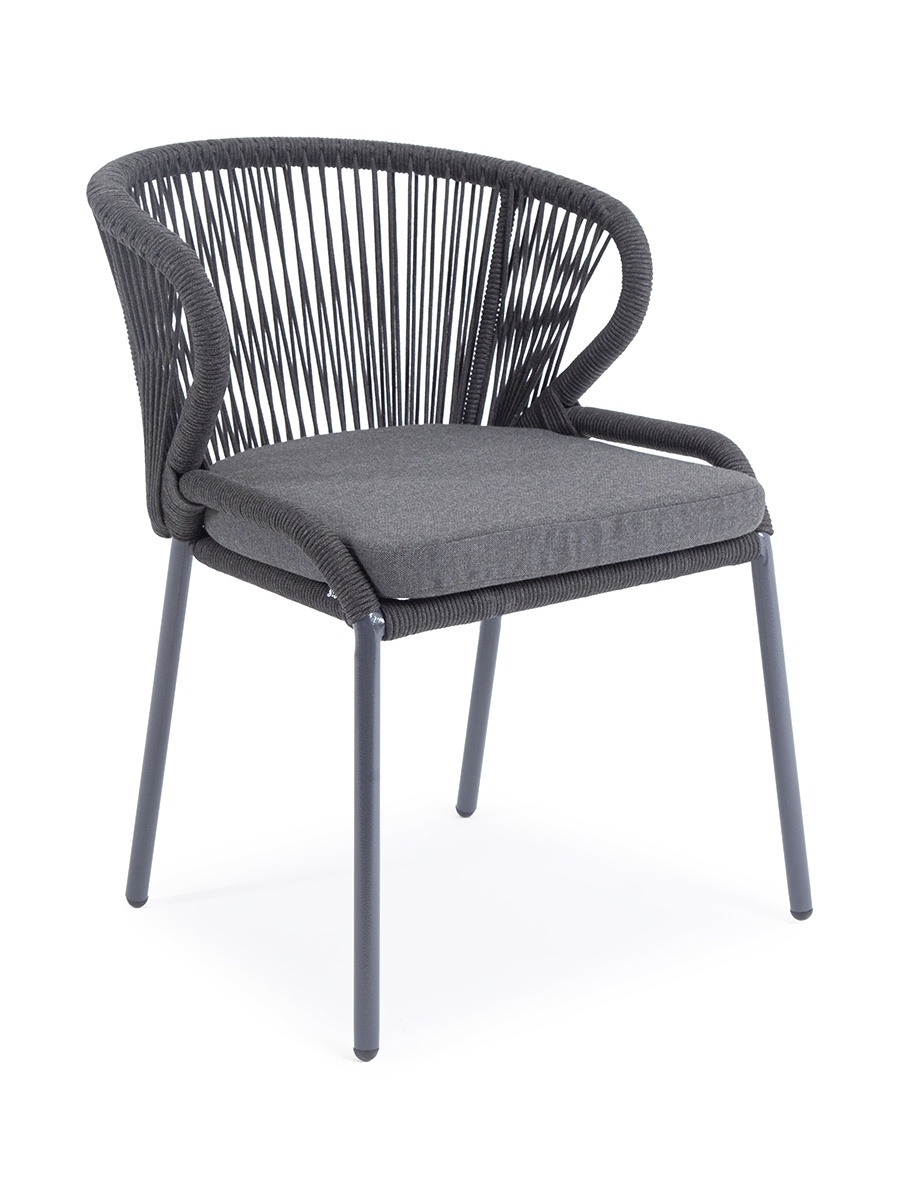 МЕБЕЛЬ ИЗ ИСКУССТВЕННОГО РОТАНГА • СТОЛЫ И СТУЛЬЯ ИЗ ИСКУССТВЕННОГО РОТАНГАДля сада и дачи • Стулья из искусственного ротангаMIL-CH-001 RAL7024 Mua D-grey(D-gray027) Милан стул плетеный из роупа, каркас алюминий темно-серый (RAL7024) муар, роуп темно-серый круглый, ткань темно-серая 027
