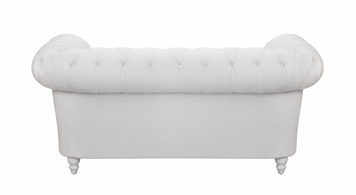 Белый двухместный велюровый диван Odis white имеет классические формы. Его компактность и оригинальный цвет, станут ярким акцентом в изысканном интерьере.