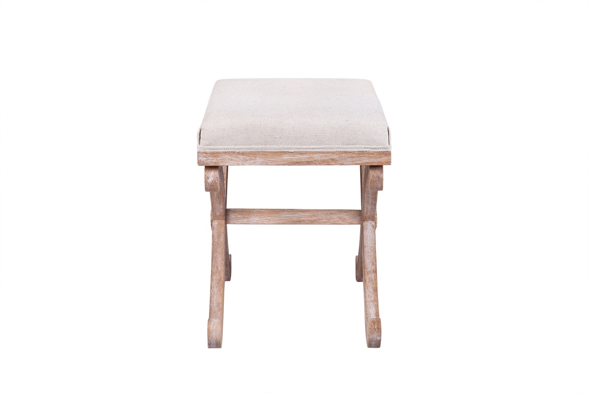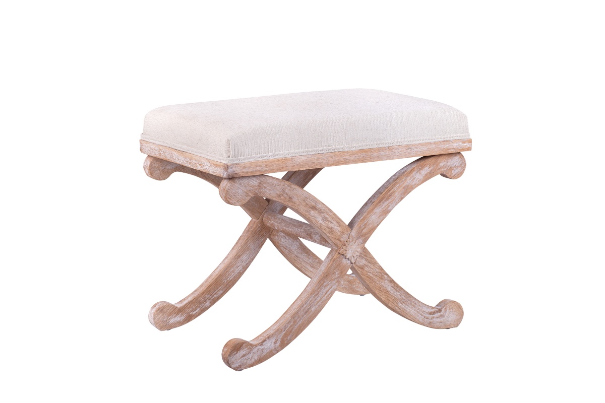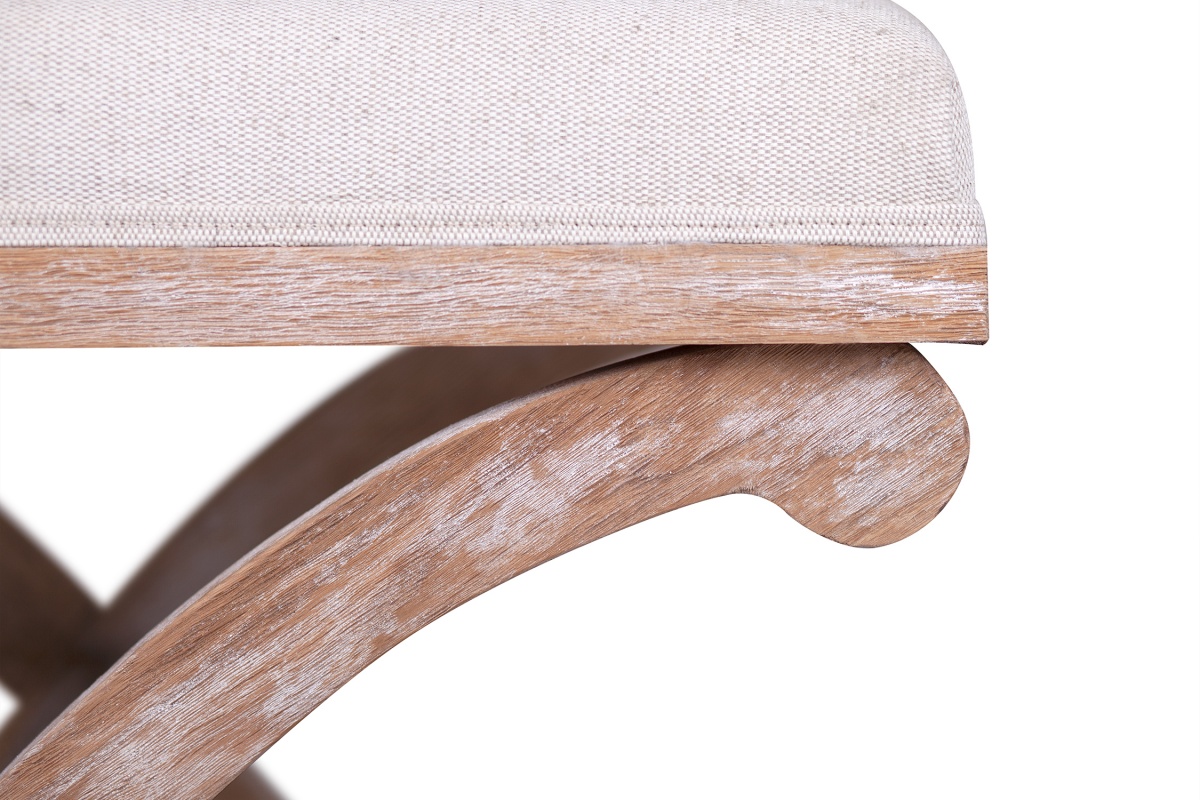 Изящная банкетка X-Bench с каркасом из натурального дерева дуб и пышным сиденьем бежевой расцветки. Верх модели покрыт мягкой тканью с приятной на ощупь поверхностью, устойчивой к истиранию и загрязнениям. Длинные ножки, закругленные на концах, попарно перекрещиваются между собой в виде буквы «икс» и соединятся поперечной планкой.
