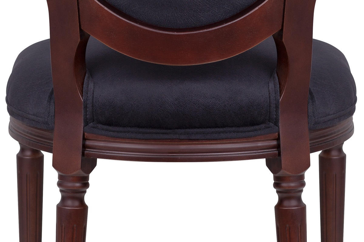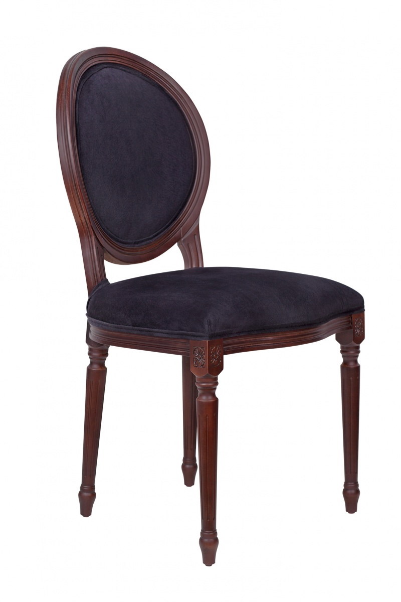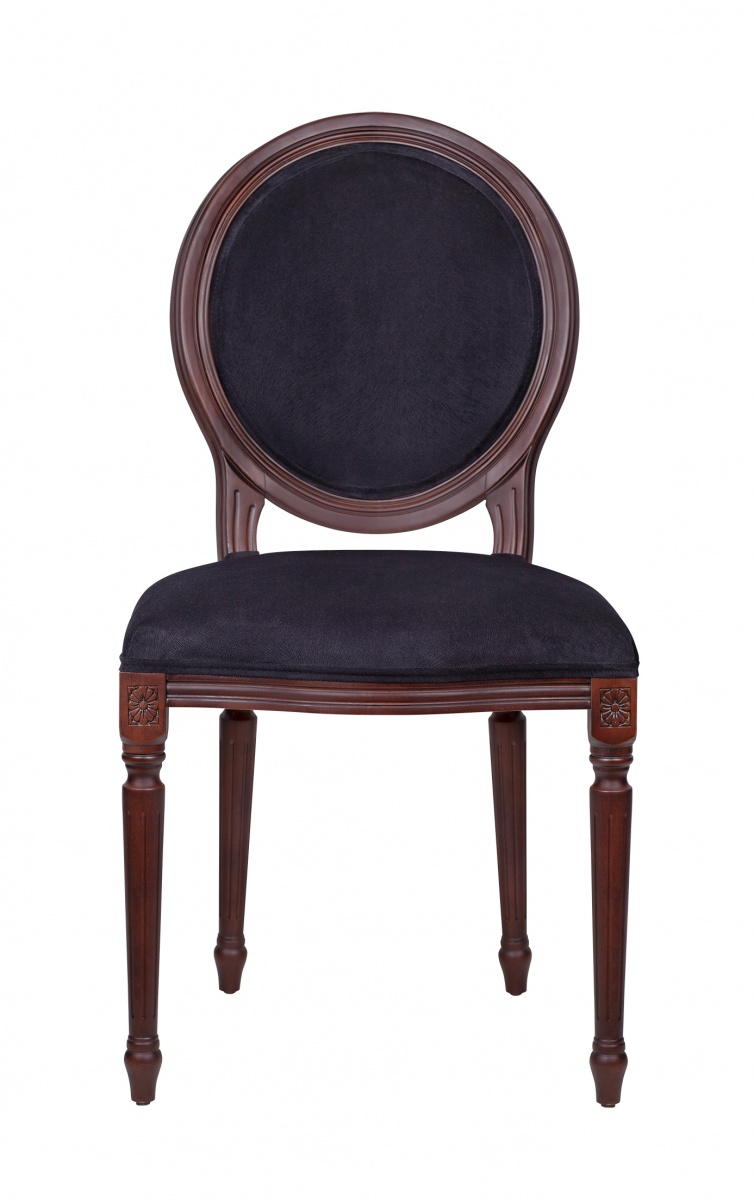 Стул Delo kora black в элегантном дизайне, с прочным основанием из массива бука. Ножки украшены резьбой, круглая спинка в деревянном обрамлении напоминает медальон. Обивка изготовлена из ткани, приятной на ощупь. Классическая расцветка делает модель универсальной и пригодной для использования как в однотонном, так и контрастном интерьере.