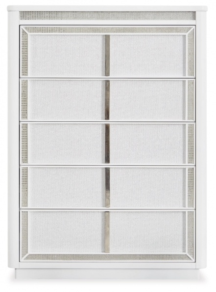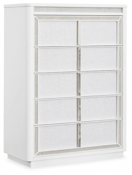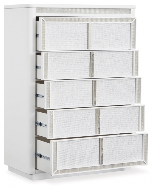 Этот комод преобразит вашу спальню. Его современный дизайн и гламурные детали создают изысканную атмосферу уединения. Встроенная светодиодная подсветка и выдвижные ящики, обрамленные стразами, придают стиль и практичность в хранении. Пусть ваше святилище сияет, и никто не сможет потускнить его блеск.