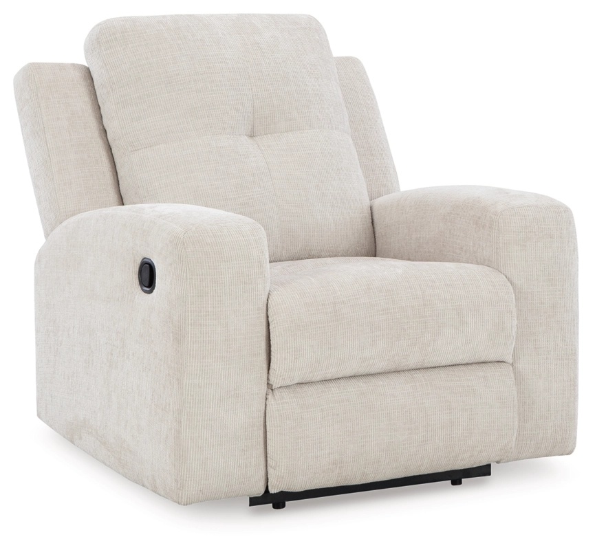 Особенности товара: This recliner invites you to a luxuriously soft lounging experience. The chic hue fits right in with contemporary color palettes. A tufted back keeps the look right on trend. Balancing style and function, its pull tab reclining effortlessly takes you to relaxation mode. Pull tab reclining motion. Corner-blocked frame with metal reinforced seat. Attached cushions. High-resiliency foam cushions wrapped in thick poly fiber. Polyester upholstery. Zero wall recliner design requires minimal space between wall and chair back