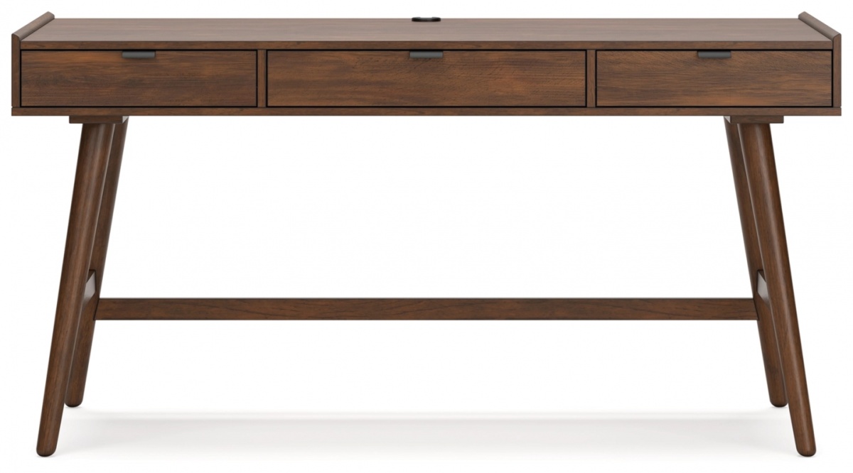 Обновленный взгляд на ретро-эстетику. Этот домашний офисный стол добавит игривой простоты вашему рабочему пространству, передавая архитектурный язык стилей середины века. Изящный по дизайну, он привлекает внимание гладкой открытой рамой. Повседневная, но вневременная отделка и три ящика для хранения дополняют этот кабинет по форме и функциональности. Изготовлен из массива каучукового дерева, шпона мангового дерева и подложки из МДФ. Отделка в средне-коричневом тоне натурального дерева. 3 ящика с полностью готовой внутренней частью, конструкция «ласточкин хвост» и боковые направляющие на шарикоподшипниках. Вырез для укладки шнура. Открытый желоб для укладки шнура питания. Круглые конические ножки.