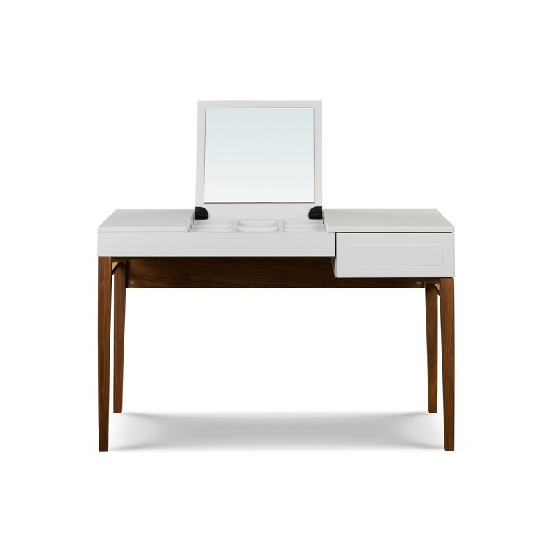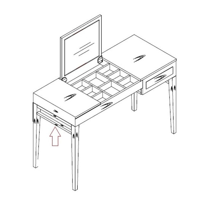 Модель дополнена ящиком и откидной крышкой для внутреннего отсека с зеркалом.