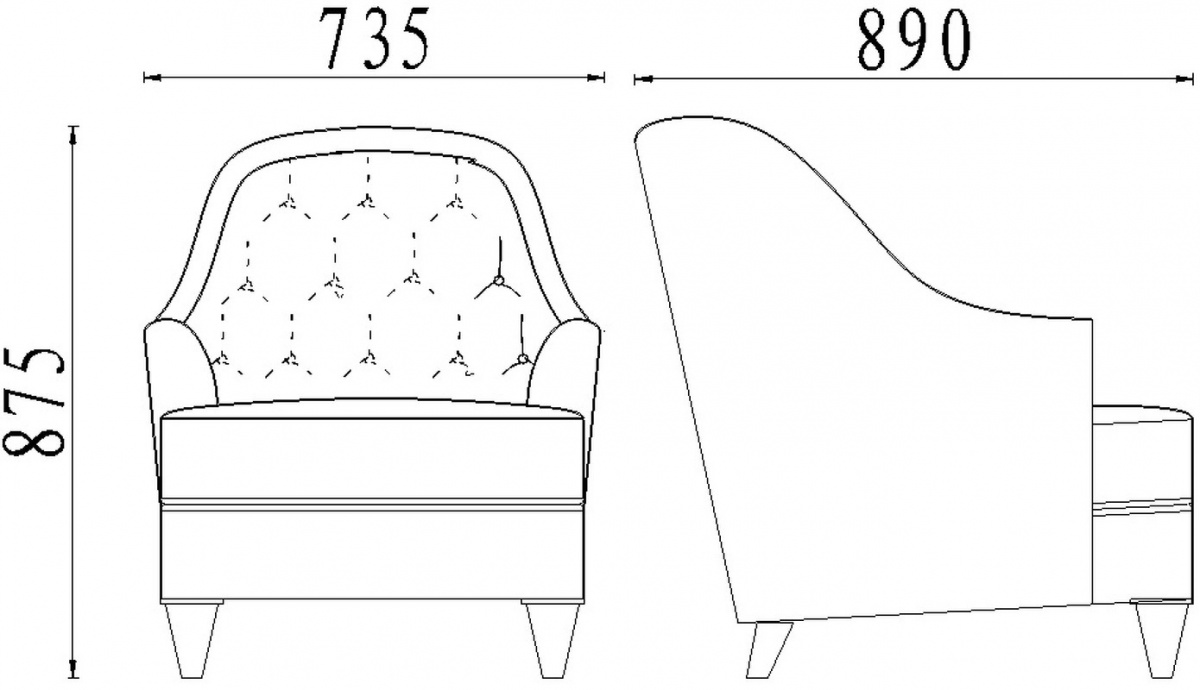 Спинка и частично подлокотники декорированы стежкой капитоне.