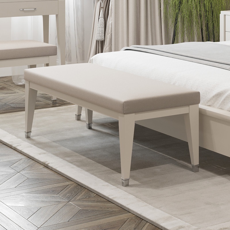 Банкетка на прямых ножках выполнена в современном стиле.