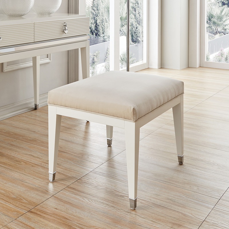 Особенности товара: Пуфик Modena от итальянского бренда Fratelli Barri. Является прекрасным дополнением к туалетному столику в данной коллекции или как самостоятельный предмет интерьера. Отделка - бежевый глянцевый лак. На ножках металлические колпачки. Выполнен из массива дерева и высококачественного МДФ класса Е1. Сидение обито тканью из коллекции фабрики в бежевых тонах. Тип ткани - велюр. Состав ткани - 68% район, 18% хлопок, 14% терилен. Цвет фурнитуры - хром.