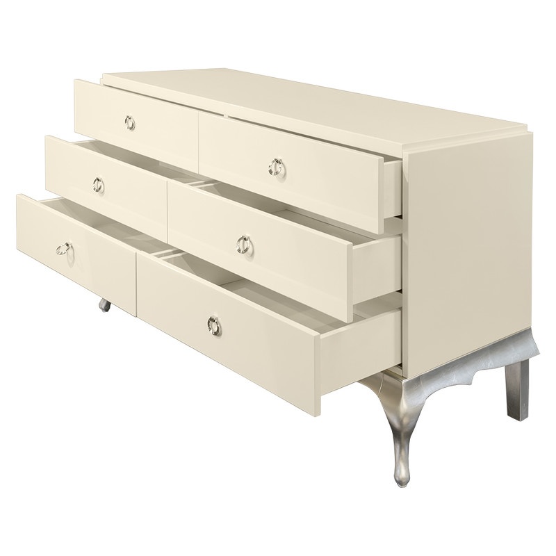 Комод Venezia выполнен в стиле близком к классическому. Сочетание прямого корпуса и ножек кабриоль придает мебели этой коллекции особенную привлекательность. Прямые детали корпуса выполнены из МДФ класса Е1.