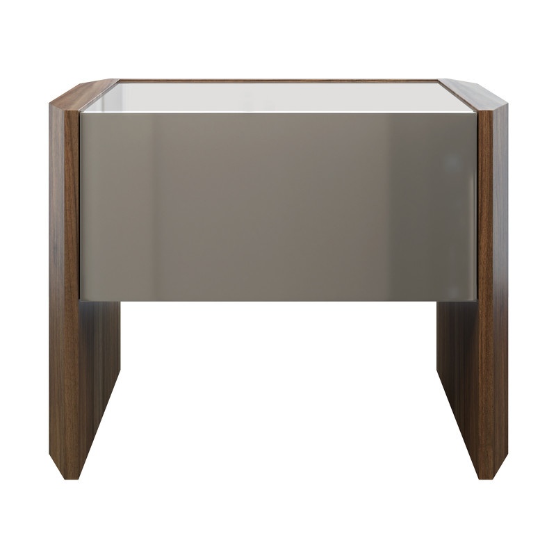 Прикроватная тумбочка с одним ящиком из современной коллекции Avila от испанского бренда MOD Interiors. Комбинированный дизайн из глянцевого лака и древесины в шпоне натурального ореха.