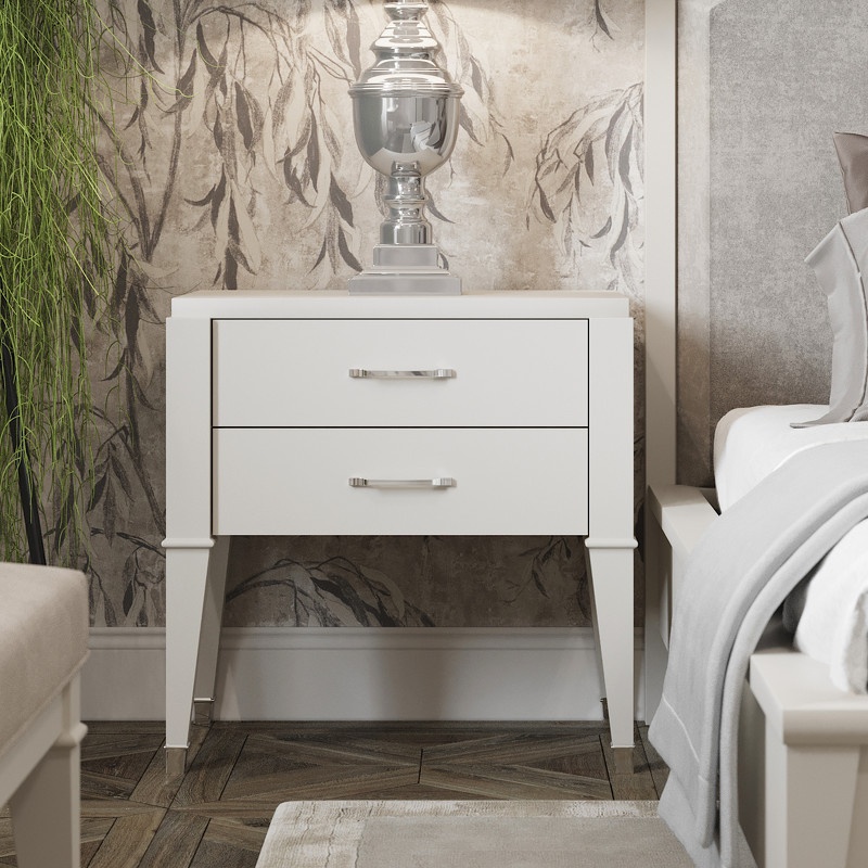 Прикроватная тумбочка на высоких ножках выполнена в стиле Ар-деко.