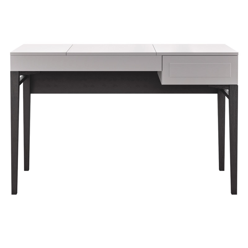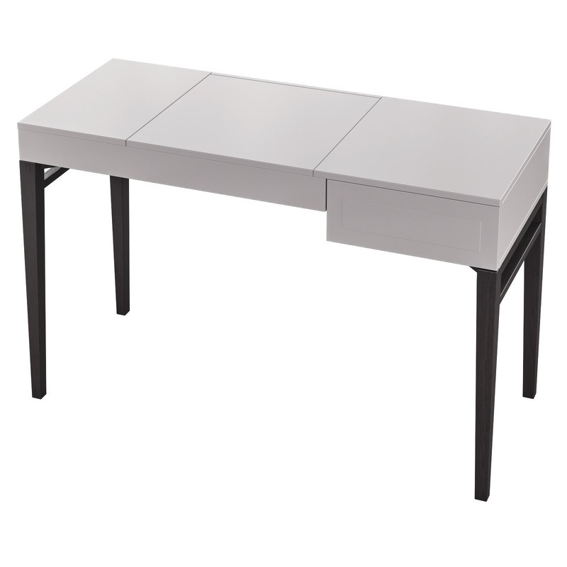 Серый туалетный столик на высоких ножках из коллекции Marbella от испанского бренда MOD Interiors. Модель дополнена ящиком и откидной крышкой для внутреннего отсека с зеркалом.