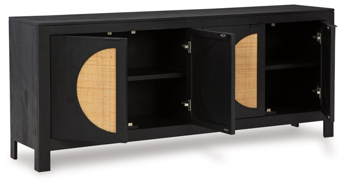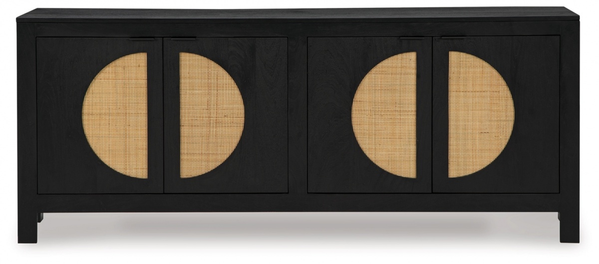 Особенности товара: Придайте своему дому высокий стиль и функциональность с помощью этого современного акцентного шкафа. Дверные фасады, тканые из тростника, и контрастная черная отделка придают этому предмету, вдохновленному серединой века, вау-эффект. Независимо от того, подходит ли он для хранения вещей в столовой, домашнем офисе или прихожей, он станет настоящим экспонатом.