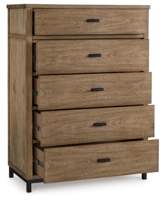 Особенности товара: Изящный в своей простоте, этот комод демонстрирует непринужденный подход к изысканности. Его дизайн из смешанных материалов привнесет модный городской шик в ваши утренние и вечерние дела, а функциональные особенности избавят вашу спальню от беспорядка. Одежда и постельное белье легко убираются в плавно выдвижные ящики.