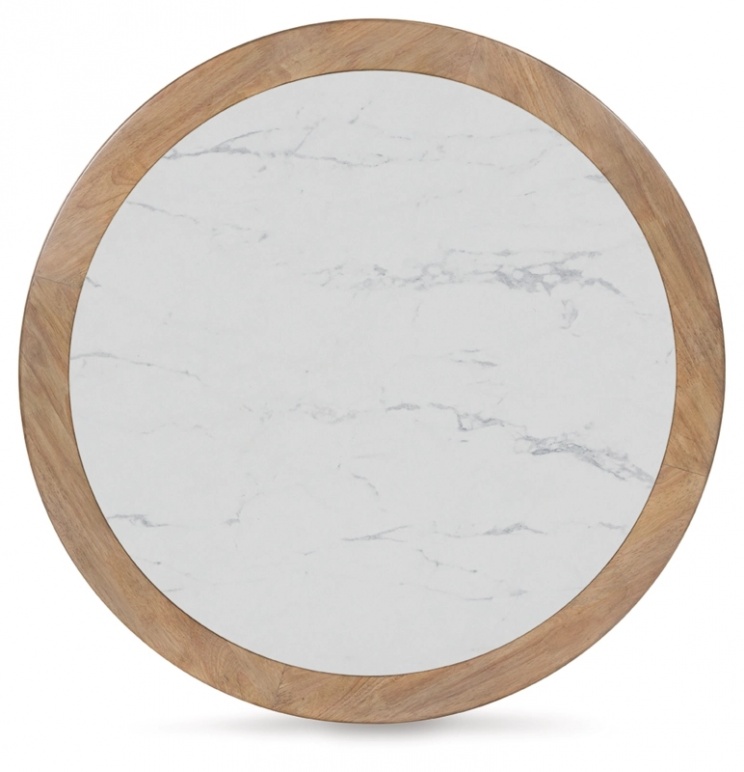Особенности товара: В этом журнальном столике элегантность сочетается с естественным шармом. Создаете современную гостиную? Столешница из искусственного мрамора прекрасно сочетается с рифленой основой, создавая модный образ повседневной жизни. Это идеальное место для хранения декоративных книг и акцентов. Или поместите сверху поднос для пультов и других необходимых развлечений. Ролики позволяют переставлять их по своему усмотрению.